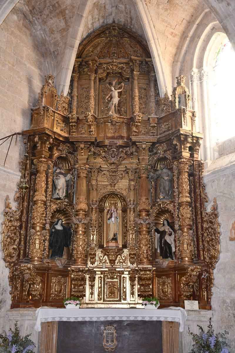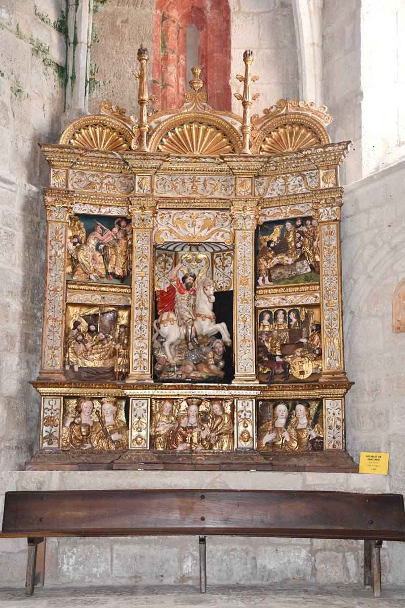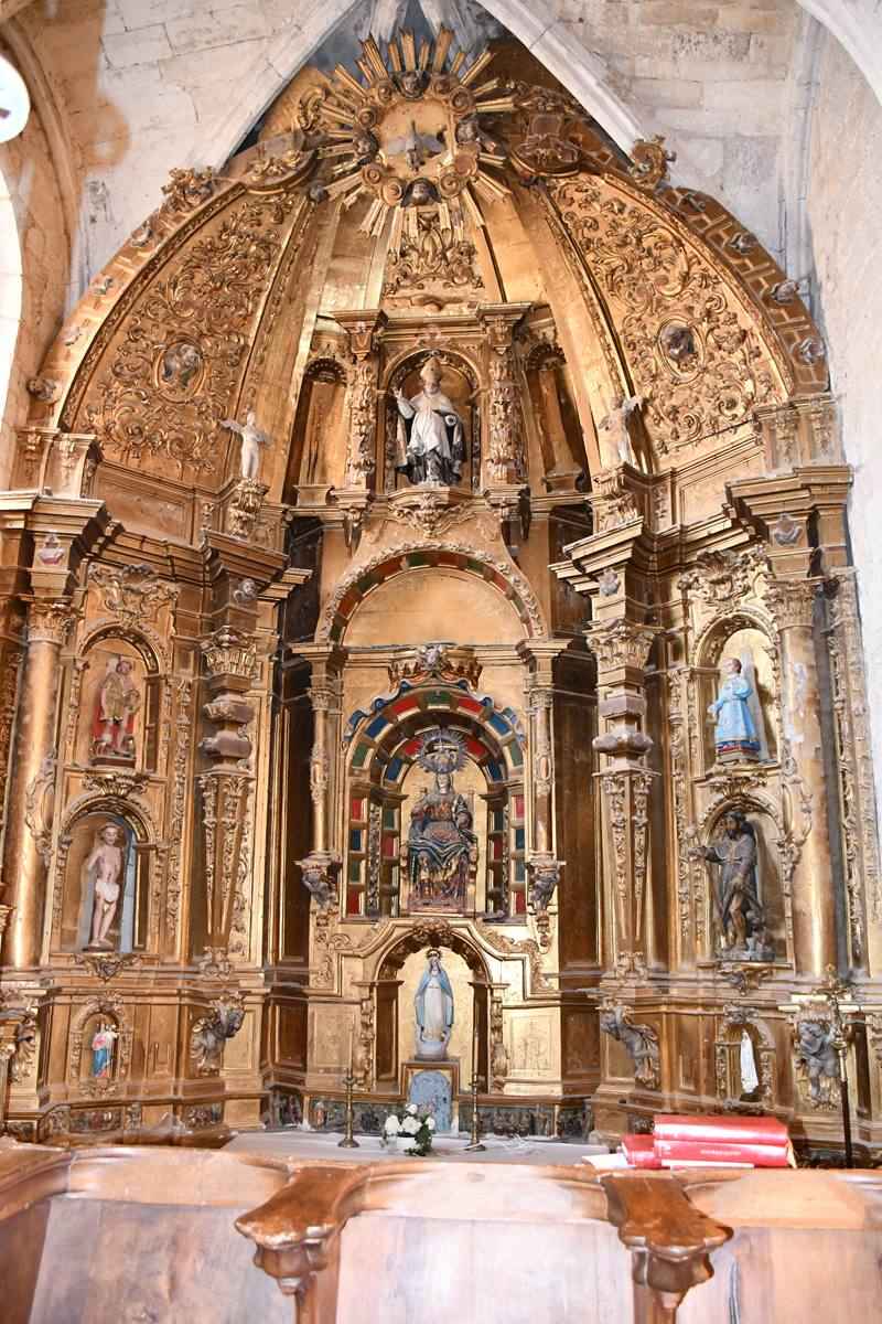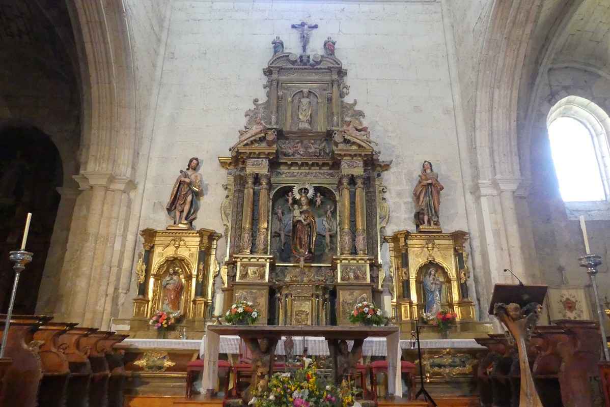 En el interior, destaca el retablo mayor neoclásico y un retablo plateresco de Santiago, en la cabecera. Sobresalen también dos pilas bautismales, una románica muy sencilla y la otra renacentista, profusamente decorada, un púlpito de piedra y restos de un retablo romanista.