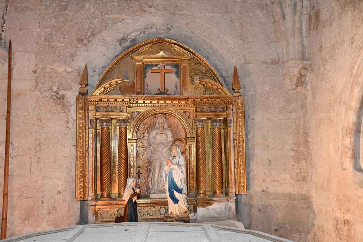 La iglesia primitiva de principios del siglo XIII, tardorrománica, fue sustituida a mediados del siglo XIII, por el actual inmueble gótico. De estilo tardorrománico restan sólo elementos escultóricos en el claustro y dos portadas, la occidental, con arquivoltas apuntadas y capiteles con arpías y otra tapiada, visible desde el claustro.
